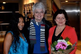 Sarah Hayward, MLA Diane Throne, and Veenesh Dubois . The Opening night of our Double Bill was well received.