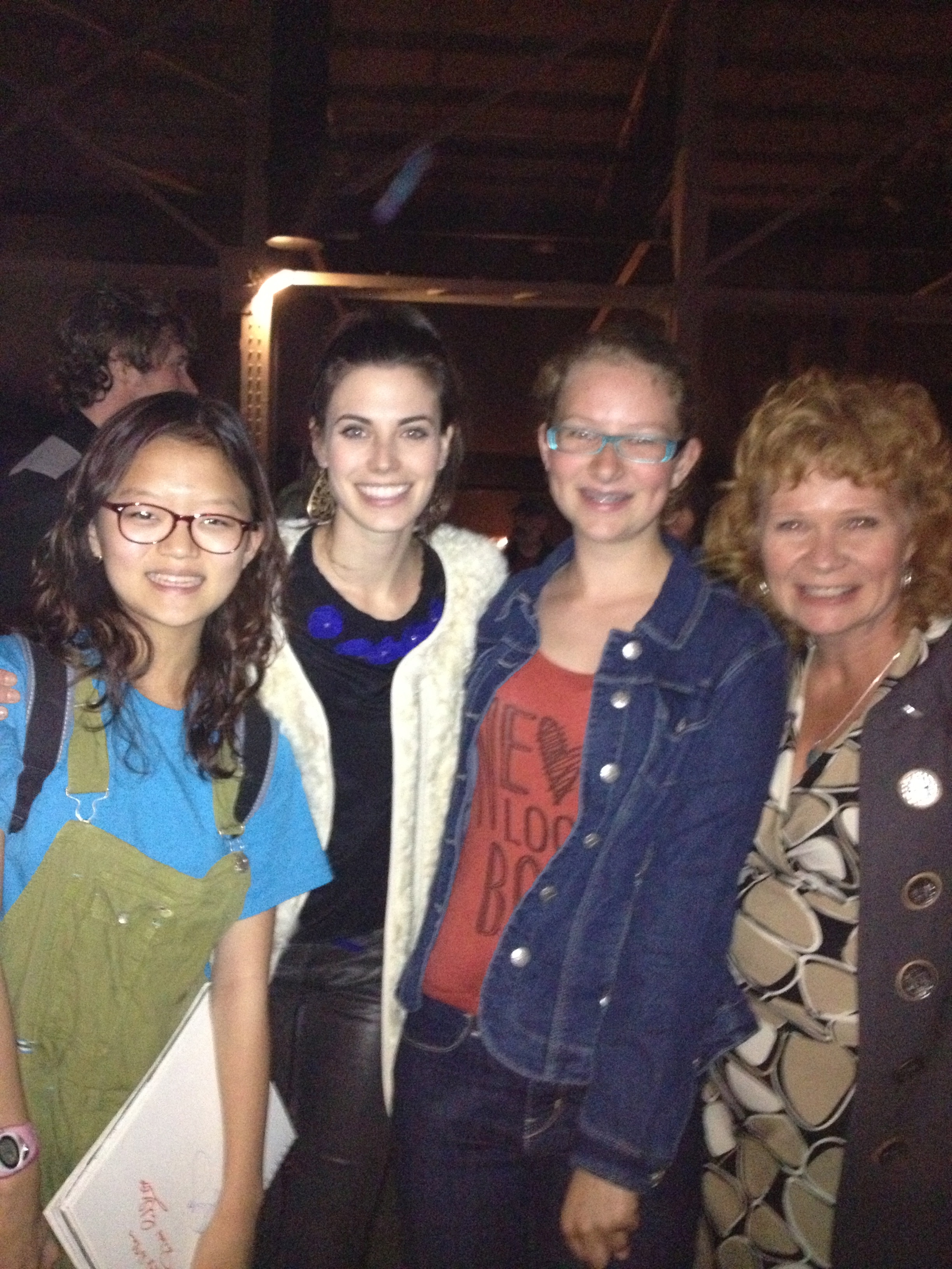 Waiting back stage at the Ag Hall in my Nun/Party Girl costume, I could hear the audience building, getting more rambunctious. Then it sounded like they were playing tromones and basoons as chairs were dragged and shuffled across the hall as more seats were squeezed into the space, I could tell the house was fulling up, so excited to see Miranda back stage when she comfirmed it was a sold out show.
